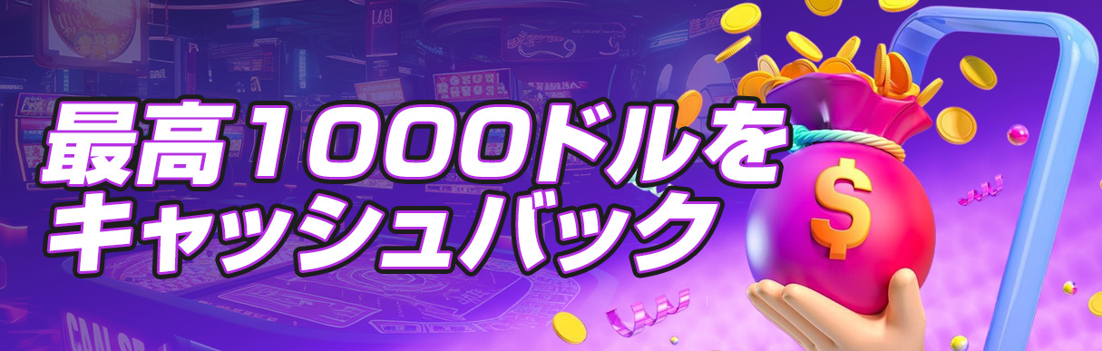 期間中に1,000ドル/100,000円 以上負けてしまった金額の10%(最高1,000ドル/100,000円)をキャシュバック!